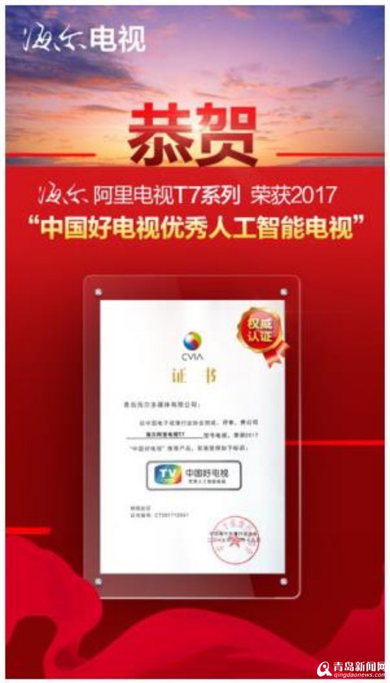 12月19日,中国电子视像行业协会主办的第三届“中国好电视”评选结果在北京发布,海尔阿里四代电视获年度高端旗舰电视、年度优秀人工智能电视两项荣誉。两天连获两大协会专家认可,实力斩获三项荣誉,海尔电视人工智能应用开发的成就备受行业瞩目,海尔电视因此被誉为“人工智能引领者”。