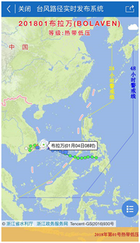 除了上述功能,青岛水利考虑的用户的实际需求,接入了“台风路径查看”功能。如今越来越多的人喜欢外出旅行,中国的东南沿海地区和一些东南亚国家是热门的旅行目的地,但遇到台风季节,也会给我们的旅行造成不小的困扰。有了“台风路径实时发布系统”,这些问题都可避免。此系统会实时显示生成台风的运动路径,同时标有台风入境48小时和24小时两条警戒线,你在外出时,不妨先查阅一下台风的实时情况,让旅行更舒心,更安心。