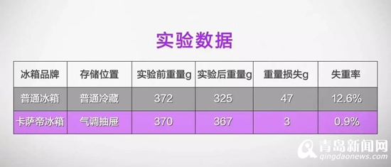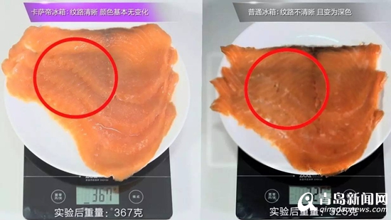 并且,卡萨帝F+冰箱内三文鱼的失水率远远低于普通冰箱内三文鱼的失水率,营养和水分流失较少。