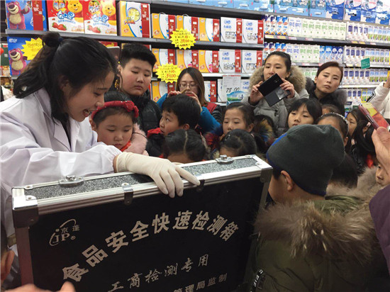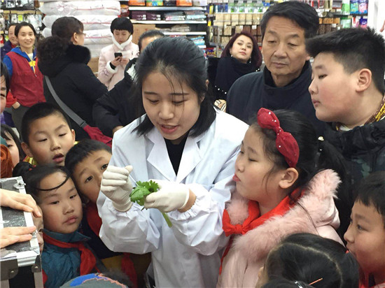 活动中工作人员利用超市快检设备现场检测蔬菜农药残留,让在场的学生们大开眼界。“我回家以后就可以告诉妈妈如何挑选蔬菜,如何买放心食品,妈妈再也不用担心我吃坏肚子啦!”北仲二小的学生开心地说道。