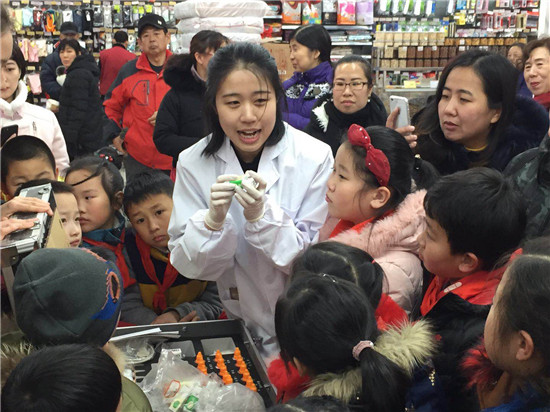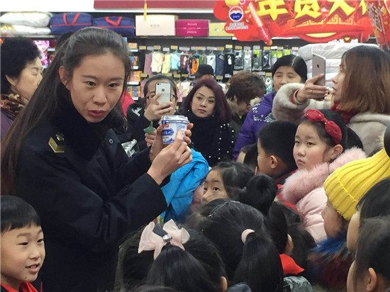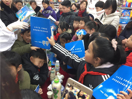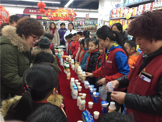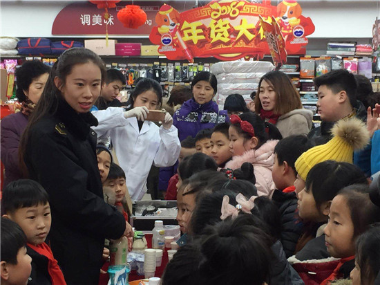 2018年1月31日14:00,镇江路街道食药所组织青岛北仲路第二小学学生,开展“食品安全进校园”活动,带领学生走进青岛十八家家悦超市有限公司延吉路店,由食药所工作人员结合实物为学生现场讲解了什么是健康饮食,各种“垃圾食品”的危害,以及如何辨识假冒与伪劣的食品和“三无”产品等食品安全知识。