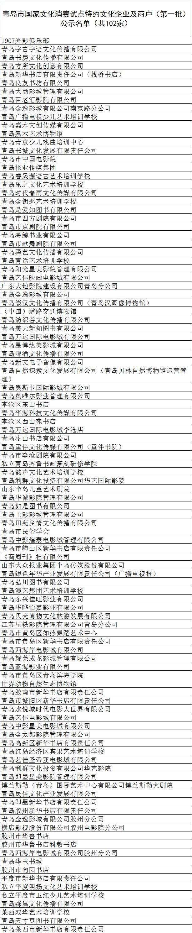 根据我市国家文化消费试点工作安排,前期征集了第一批特约文化企业及商户。在企业、商户自愿申报的基础上,经业务部门审核、专家评审,确定了入选企业及商户名单(附后),现予以公示。如有异议,请于公示后五个工作日内反馈市文化消费试点工作办公室。联系电话:82862130