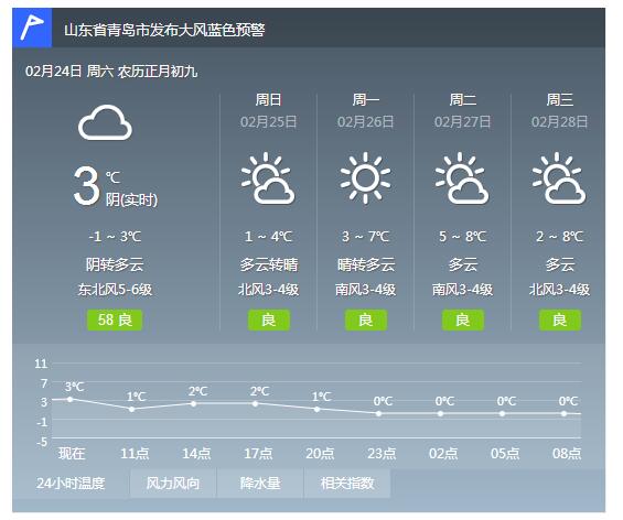 青岛今日阴转多云 最高气温3℃最低气温-1℃