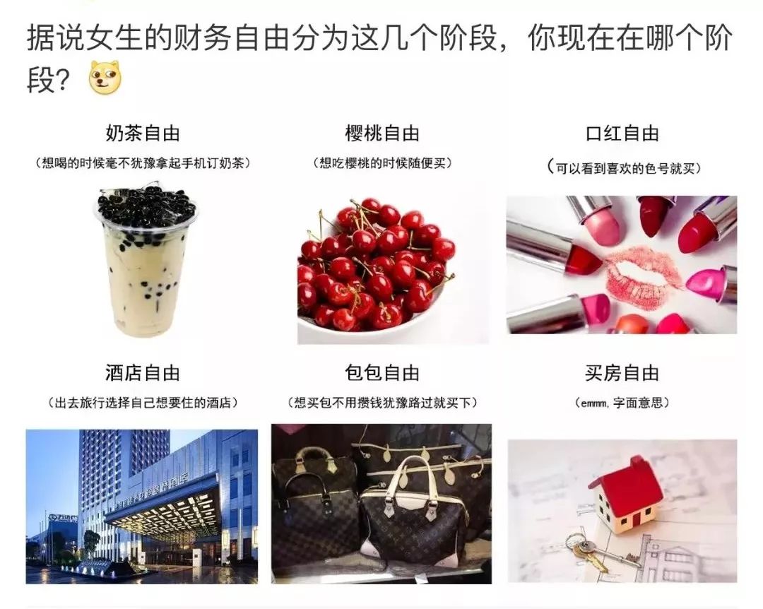 最近这样一条微博突然火了,将女生的财务自由分六个阶段,你现在处在什么位置?