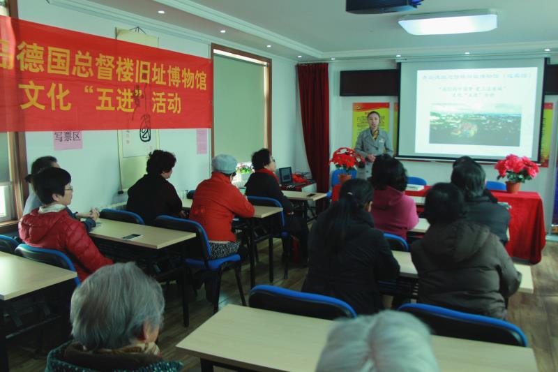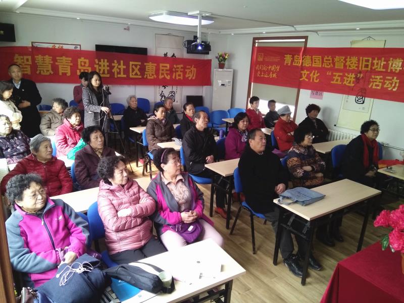 智慧青岛3月22日讯 3月22日,智慧青岛进社区首场惠民活动在市北区海伦路街道哈尔滨路社区启动,当天的青岛德国总督楼旧址博物馆文化“五进”及口腔健康进社区两大活动,将青岛历史文化知识和口腔健康防护知识搬到社区送进楼院,深受现场闻讯而至的50余名居民欢迎。