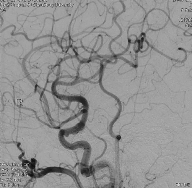 41岁的赵女士一年前因“突发头痛伴恶心呕吐4小时余”入山东大学齐鲁医院(青岛),行DSA检查示右侧C2段夹层动脉瘤: