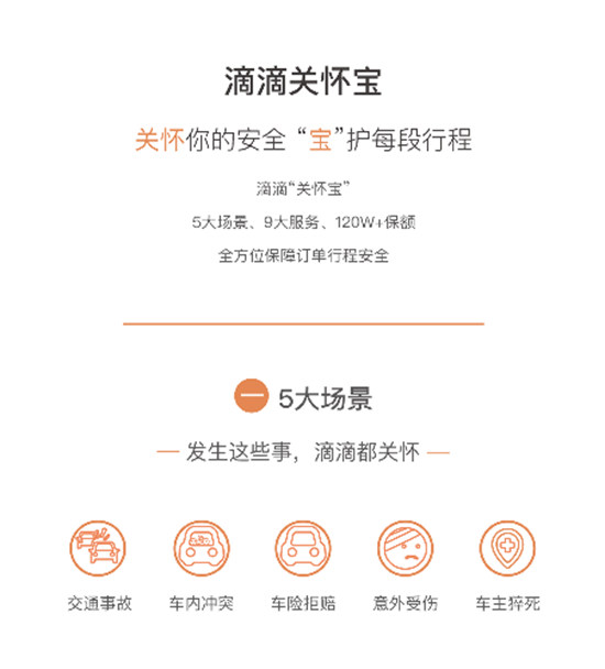 事实上,在此之前,滴滴安全保障服务措施已经形成体系,包括先行垫付、保险保障、应急响应、住院探望等多项保障措施。“关怀宝”九大服务推出后,将使滴滴安全保障更加注重服务、人性化,为事故中的当事人提供更多关怀、帮扶。