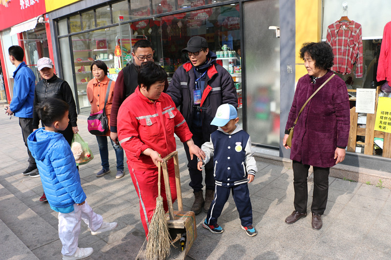 刚刚体验完扫地的小朋友杨文博说:“我今天感受到了环卫阿姨的辛苦,扫地必须要用力扫,往垃圾斗里扫垃圾的时候,一定要抓好垃圾斗,不然就要翻了,又得重复扫。”