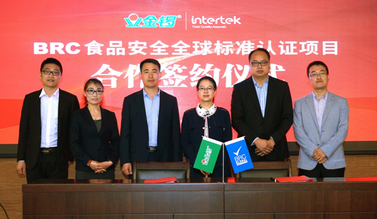4月3日,肉制品行业领先品牌金锣集团与全球领先的质量安全服务机构天祥集团(Intertek)在金锣集团总部签署合作协议,金锣文瑞生产中心姚现强经理、天祥集团中国区食品部谭小军经理等共同出席了本次签约仪式,双方将联手开展BRC食品安全全球标准认证项目,为广大消费者提供更加健康、安全与国际品质的肉制产品,并引领中国肉制品“走出国门”。