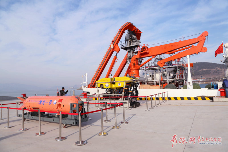 以“蛟龙”、“海龙”、“潜龙”深海潜水器组成的“三龙”深海装备体系在青岛聚首。(王雷 摄)
