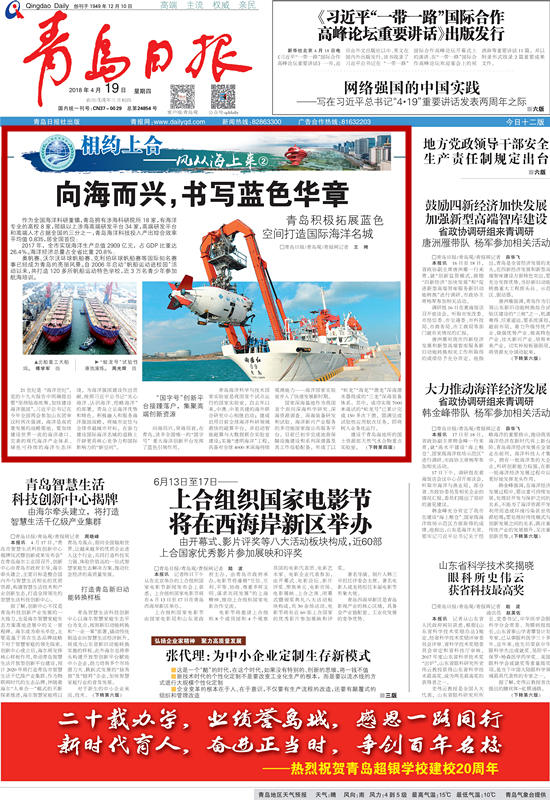 2018年4月19日青岛日报1版截图