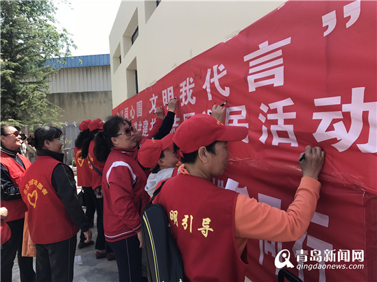 活动现场,街道党员志愿者领读“‘您懂得别忘了’提升文明素质,你我携手同行”文明倡议书,并号召百余名志愿者、居民在横幅上郑重签下自己的名字,许下“文明我代言”的承诺。