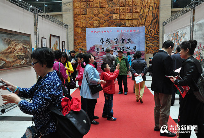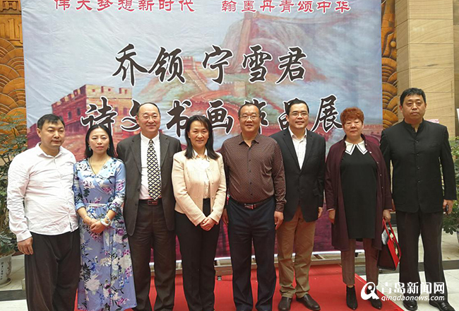 由青岛市图书馆主办的“伟大梦想新时代翰墨丹青颂中华——乔领、宁雪君诗文书画作品展”于5月1日上午在青岛市图书馆西一楼展厅隆重开幕。青岛市文化广播新闻出版局李文革副局长、青岛市图书馆于婧馆长、彭德怀元帅的侄孙彭宇先生、北京西山诗社社长叶宝林、青岛市北区工商联党组书记田守禄先生以及多位岛城各界领导和友人共同参加了展览开幕式。