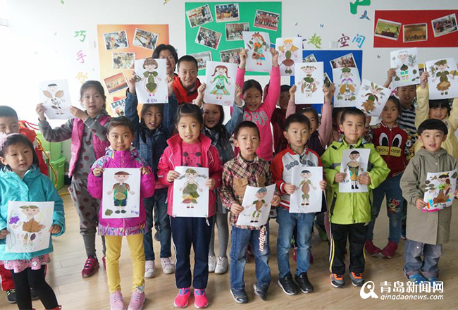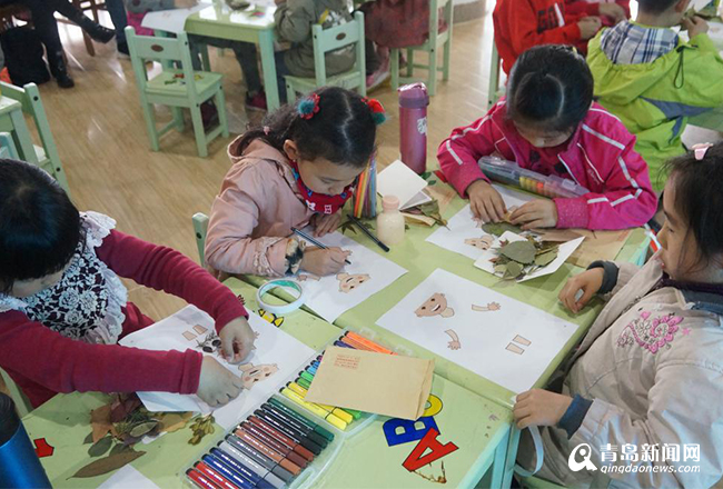 手工环节,老师带大家一起用树叶拼出自己心中春天的颜色。小朋友们用不同颜色、不同形状的树叶拼出了俏皮可爱的树叶拼图,并依次用英语介绍了自己的作品,小朋友们各式各样的作品充分体现了孩子们天真烂漫的想象力。