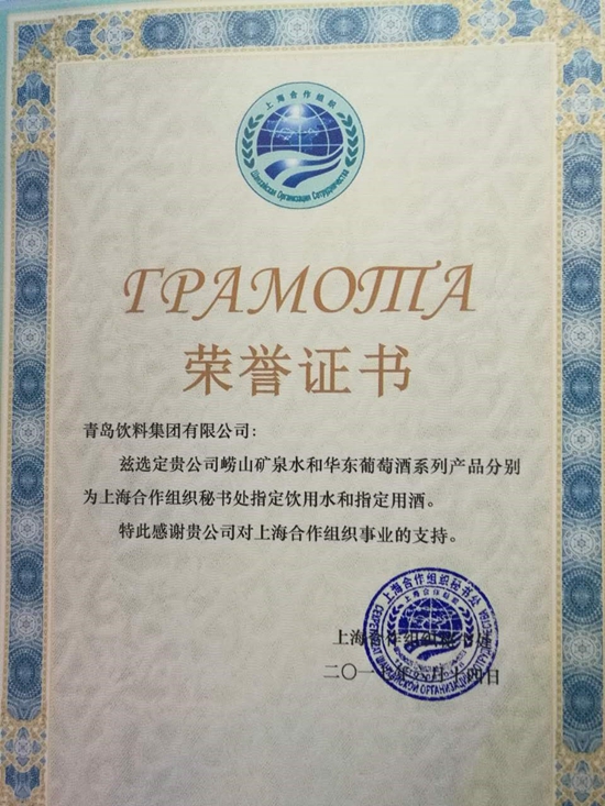 据青岛饮料集团董事长王达先生介绍说,此次华东葡萄酒被上海合作组织秘书处授权成为官方指定用产品,不仅仅是企业的光荣,更是我们的责任和压力,未来青岛饮料集团将继续积极响应国家“一带一路”发展号召,充分借助好上海合作组织的良好平台,为中国轻工饮料产品在国内外市场销售拓展闯出新路。