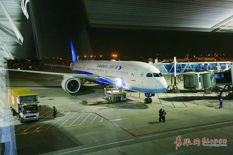 青岛空中航线达到186条。图为2017年12月11日,青岛—洛杉矶直飞航线开通。(傅学军 解豪 摄)