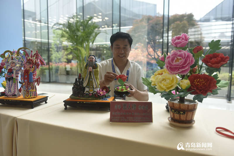 与李平一样,国家级非遗项目菏泽面塑传承人穆绪建的展演区前也站满了“粉丝”。以孔子、泰山、黄河为元素的“山东印象”面塑让媒体记者连连点赞。“孔子、泰山、黄河是山东齐鲁文化的典型代表,‘曹州面人’是国家级非物质文化遗产,两者结合更能够体现出中国气派、山东风格。”穆绪建说。