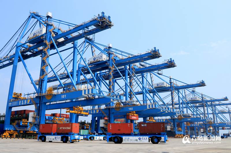 青岛港全自动化集装箱码头。(王培珂 摄)