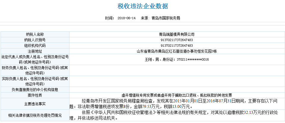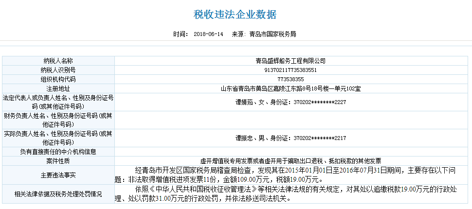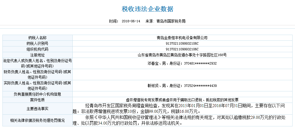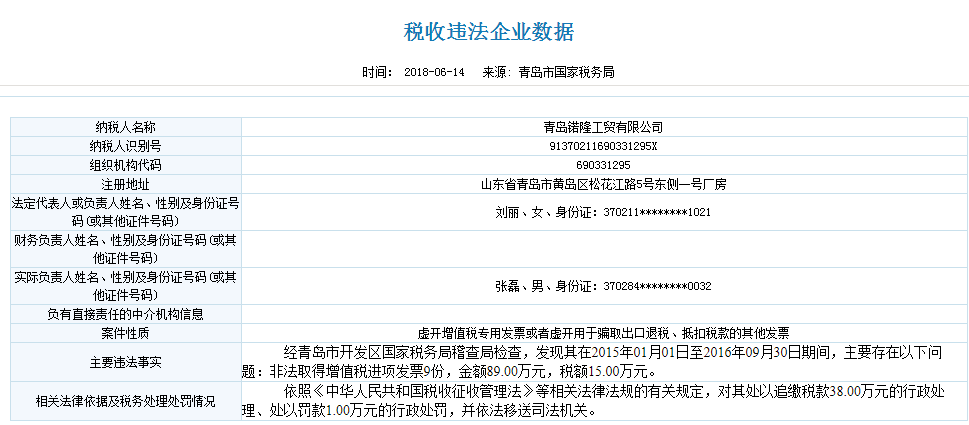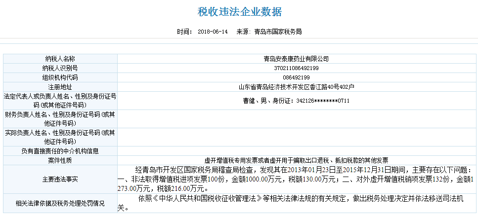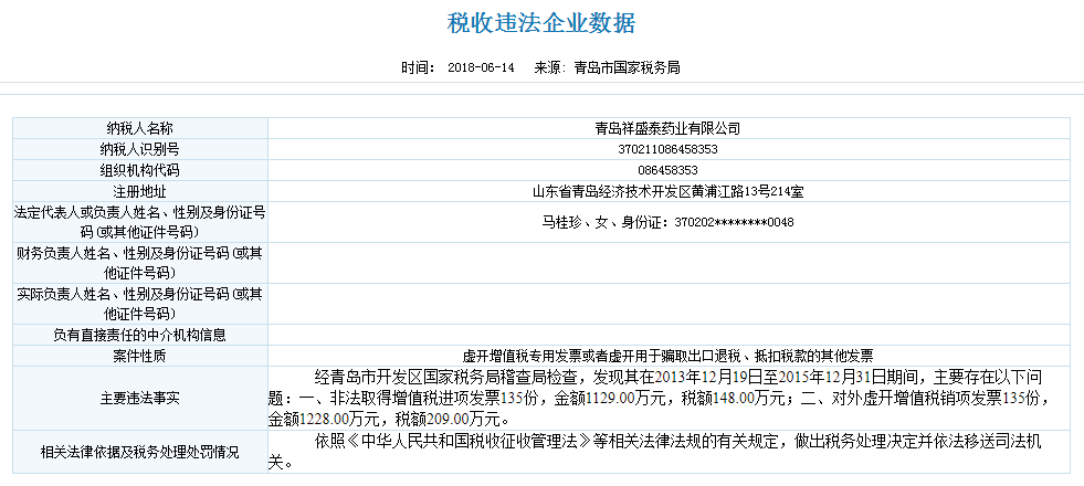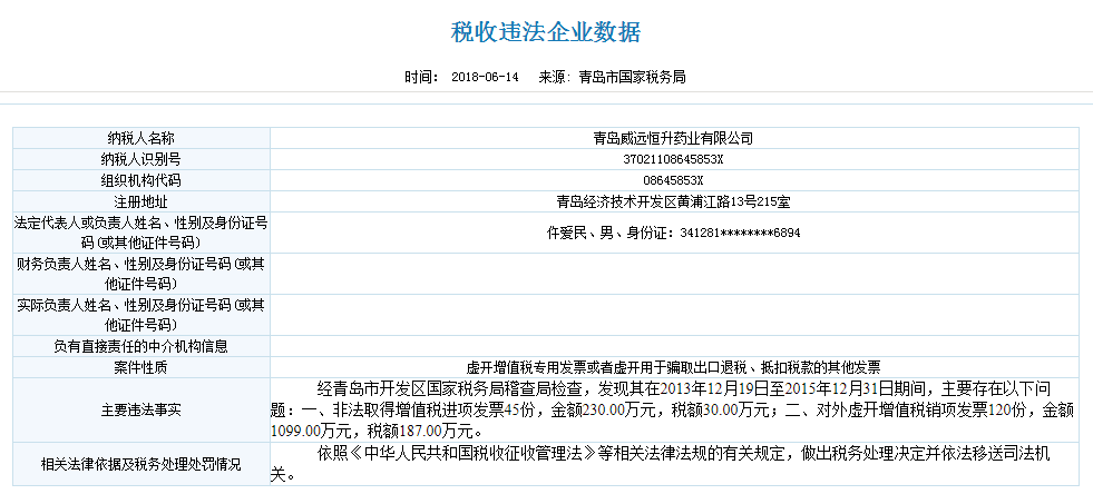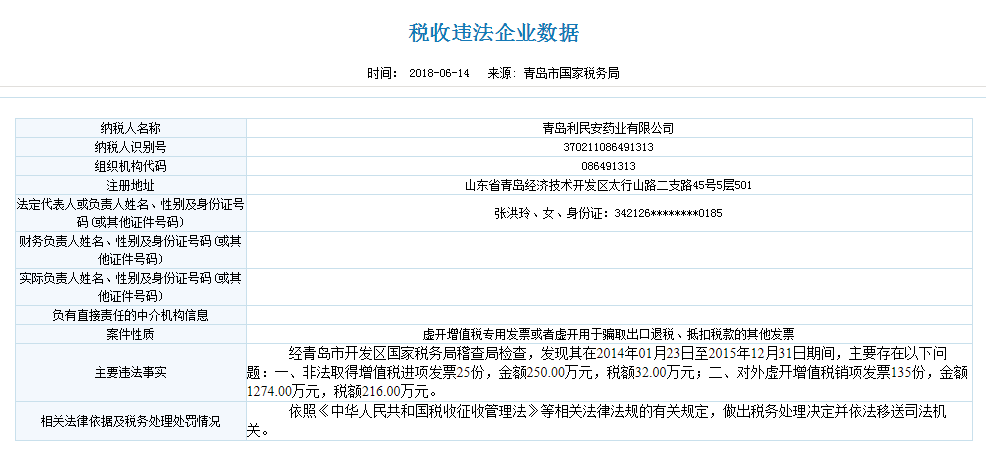 青岛税务局公告利民安药业公司等20起重大税收违法案件