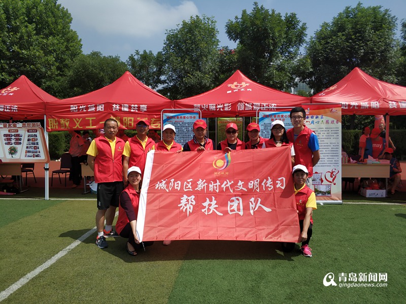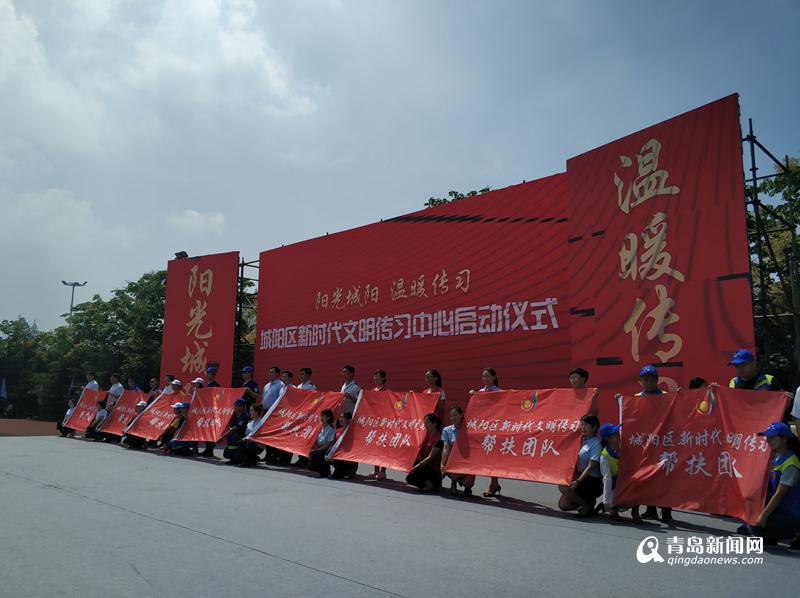 仪式中,还向分别代表应急救援、帮老助困、支教帮老、帮困助学、帮病疏导、法律帮助、文艺志愿、睦邻友好的青岛红十字蓝天救援队、青岛巴士“萤火虫”志愿服务团队等8支城阳区新时代文明传习帮扶团队授旗。
