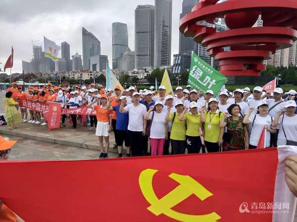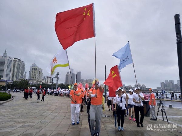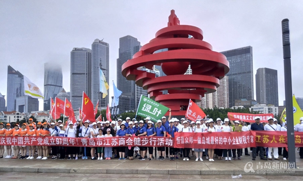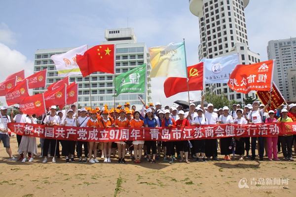 宣誓活动结束后,江苏商会组织海边健步行活动。青岛优同、苏宁、帝一铭海参、凯悦家居、胜喜路工程配套、绿叶公司清江路店、永通电梯、恒信众邦、继昌茶庄等50多家苏商会员企业党员、员工200多人,高举商会大旗和企业旗帜,从五四广场出发,沿着海滨木栈道一线,健步行至第一海水浴场,浩浩荡荡的队伍,欣赏沿途海边美景,一路欢声笑语,一起向着健康与快乐前行。
