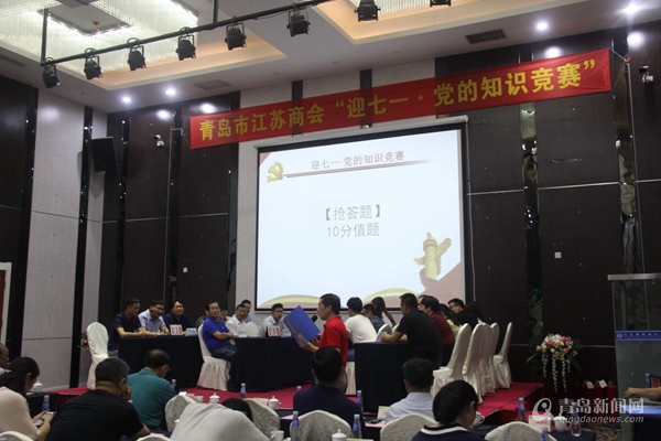 为庆祝中国共产党建党97周年,6月30日青岛市江苏商会在青岛恒星科技学院国际培训中心举办“迎七一·党的知识竞赛”,同时表彰先进党支部、优秀共产党员、优秀党务工作者,自编自导文艺节目进行汇演,增强商会对党的热爱和信仰,坚定坚决跟党走的信心。