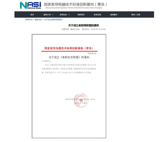 6月30日,海尔协同国家家用电器技术标准创新基地(青岛)工作组发起成立了食联生态联盟。其成员包括山东省标准化研究院、百年栗园、源本生活、果时汇、威龙葡萄酒、天鹅酿酒集团、日日顺物流、小乙物联8家企事业单位。作为食联生态联盟的发起方,海尔跨行业连接食品生产、加工、流通、信息技术、标准化研究等企事业共筑食联生态,致力于为用户提供溯源信息可视化的一站式安心食材解决方案,构建一个以用户体验为中心的、多方共赢的“生态品牌”。