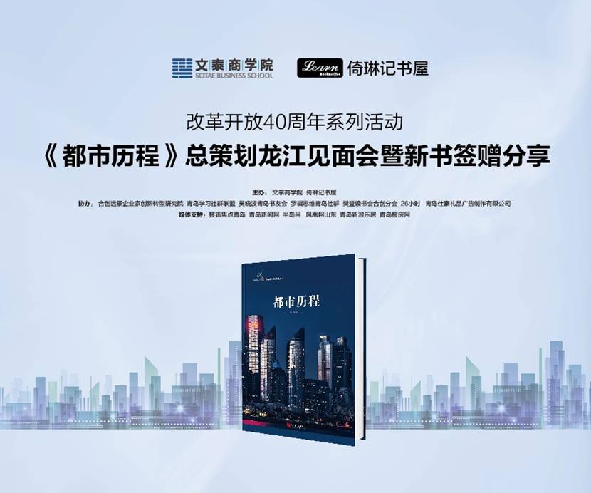 7月29日上午,文泰商学院将联合倚琳记书屋,隆重邀请《都市历程》的总策划、出品人——青岛市工商联房地产行业联盟秘书长龙江做客八大关,进行新书见面暨签赠分享会,现场讲述改革开放这40年自己亲历城市发展的那些人、那些事,分享与这座城市共生的切身感悟和体会。