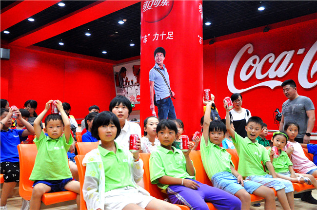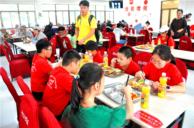 孩子们中午在可口可乐公司的餐厅就餐,活动还给每名孩子赠送了果汁饮料。