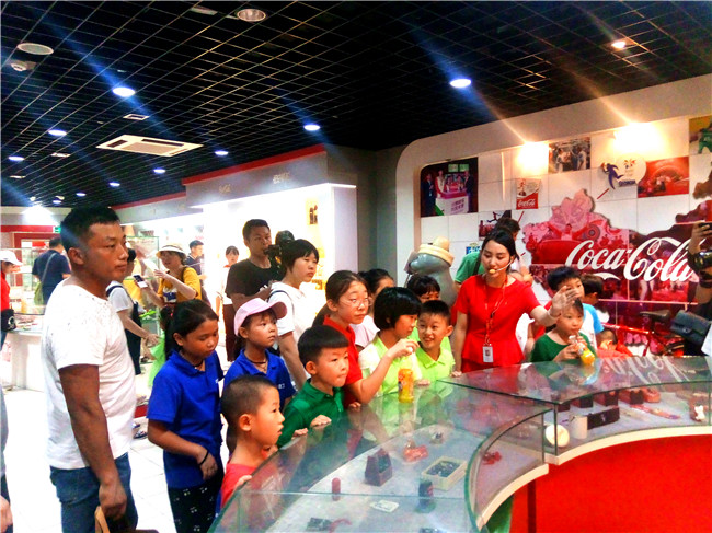 午餐过后孩子们在工作人员的带领下参观了可口可乐的生产线和可口可乐陈列馆。在此期间,来自四川巴中的宋玖优表示参加这次活动很开心。她的父母是中铁建工的工人,父母每年只有过年的时候回家一次,平时姐妹三人跟爷爷奶奶一起生活,想爸爸妈妈了就只能打电话。今天姐妹三人都来参加了这次活动,虽然父母因为工作原因不能和她们一起来,但她们依然很开心。
