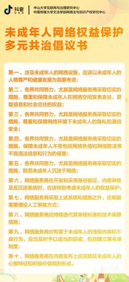 研讨会上,中国传媒大学文法学部网络法与知识产权研究中心、中山大学互联网与治理研究中心、抖音联合发布了业界首份未成年人网络权益保护多元共治倡议书,呼吁社会各界尤其是网络服务商,采取切实措施,以未成年人的人格尊严和健康发展为首要考虑,尊重和保障未成年人在网络空间发表言论、获取信息和社会交往的自由,更要保障未成年人不受包括网络色情和网络欺凌等不良违法信息和行为的侵害、防范沉迷于网络等。