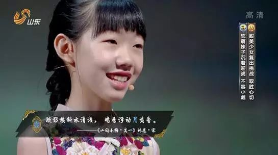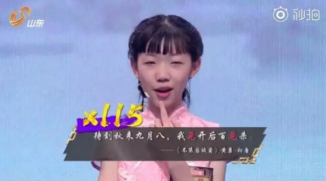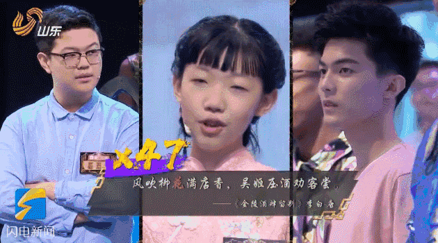 8月8日,山东卫视的《国学小名士》中又惊现另一位以“飞花令”技惊四座的小才女。而她行的还是“真·飞花令”: