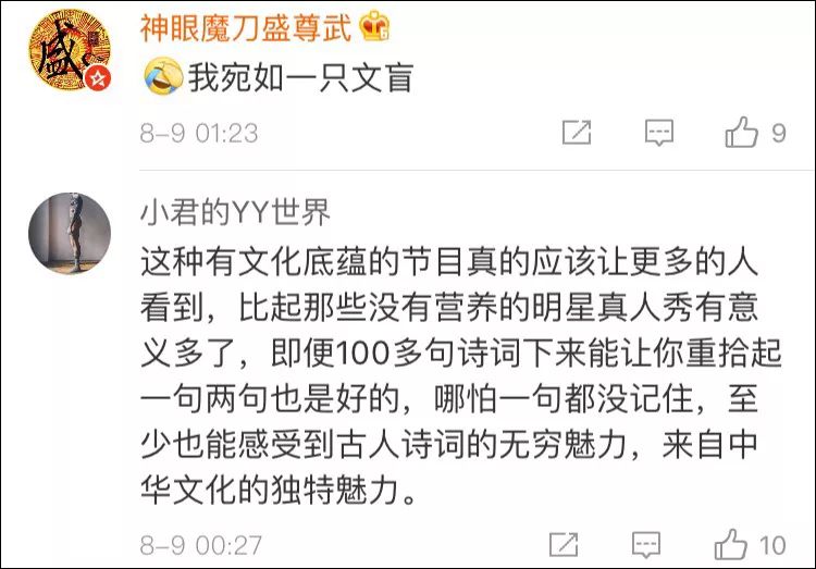 节目播出后,这段“飞花对决”的视频更引得《人民日报》等媒体的微博纷纷转发。