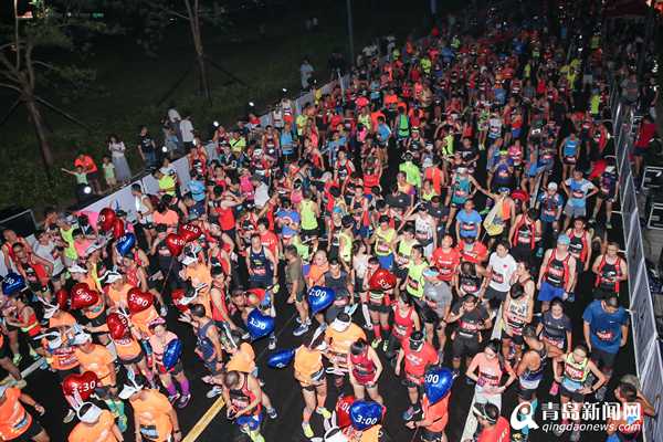 中铁世博城2018青岛·西海岸夜间国际马拉松鸣枪起跑。