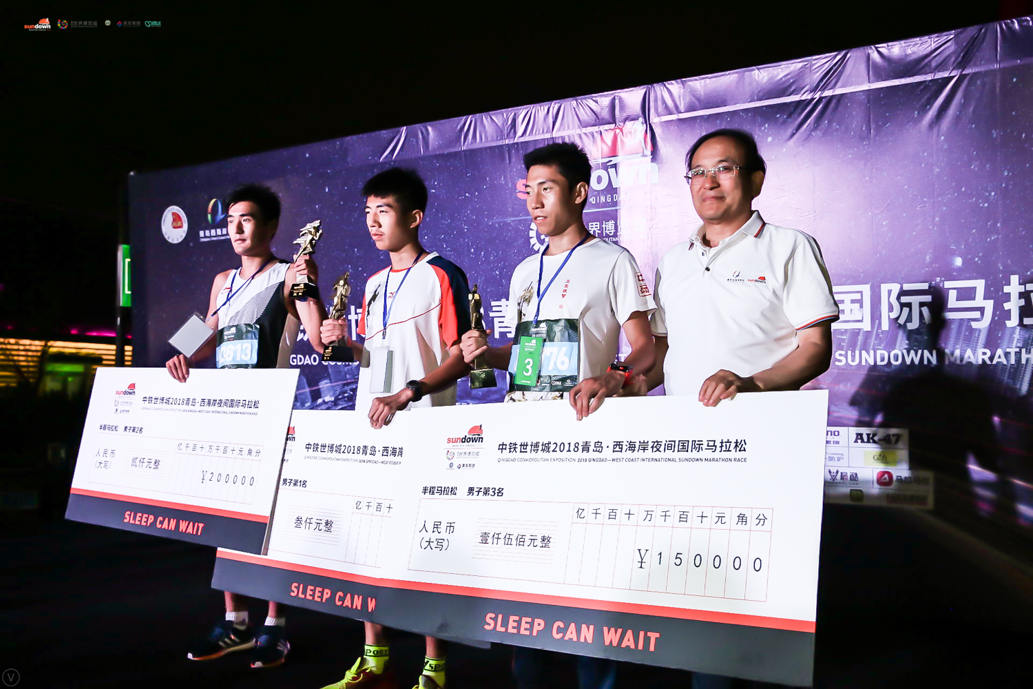 当晚21:00,在动感的DJ演出、璀璨的烟火、绚丽的灯光助阵下,一场不夜城嘉年华在中铁·青岛世界博览城拉开大幕,万人狂欢开启,这一夜的西海岸分外耀眼。经过激烈的角逐,最终来自肯尼亚的选手STANLEY KIPROTICH BETT以2小时42分31秒的成绩夺得全马男子组第一名,山东淄博的选手崔志红以3小时16分21秒的成绩夺得全马女子组第一名;半马方面,来自青岛的选手姜振泽,以1小时13分58秒的成绩夺得男子组第一名,去年夜间马拉松女子全马第一名、来自山东日照的选手焦安静,以1小时22分40秒的成绩再夺半马女子组第一名。