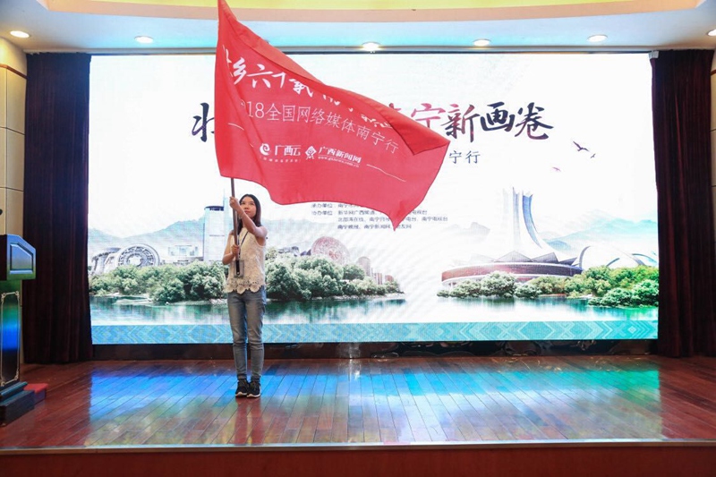随后,自治区党委网信办副主任谢世红向媒体代表授旗。“壮乡六十载南宁新画卷”——2018全国网络媒体南宁行大型采访活动正式启动。