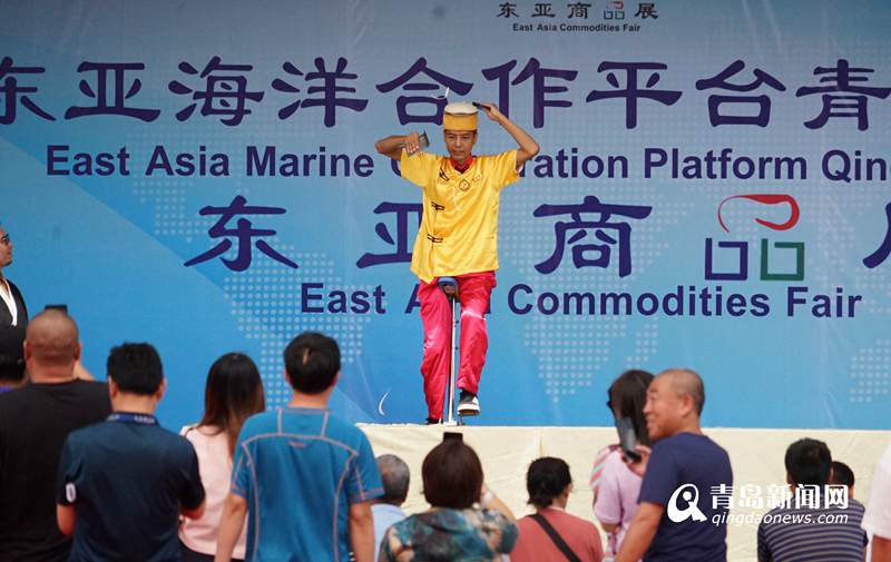 在东亚文化体验区举办的“2018东亚商品展连廊文化表演”,将从9月5日持续至8日,每天10:00-12:00,14:00-16:00,集中展示东亚、东盟、上合国家以及中华传统文化。表演现场,来自巴基斯坦的留学生双人组合带来精彩民族舞蹈,俄罗斯魔术师现场表演近景魔术,巴西柔术艺术家的精湛技艺惊艳全场,泰国和朝鲜民族舞蹈尽显异域风情……来自中国烹饪协会名厨委员会中华厨艺绝技表演团的演示员李红凯、吴斌、岳振东等厨艺大师现场表演面皮长卷、蒙眼拉面、花样雕刻、骑独轮车头顶刀削面、百米一根面等绝技绝活技惊四座,现场观众连连称奇。来自青岛西海岸新区的艺术团的专业演员带来了地方曲艺——茂腔。