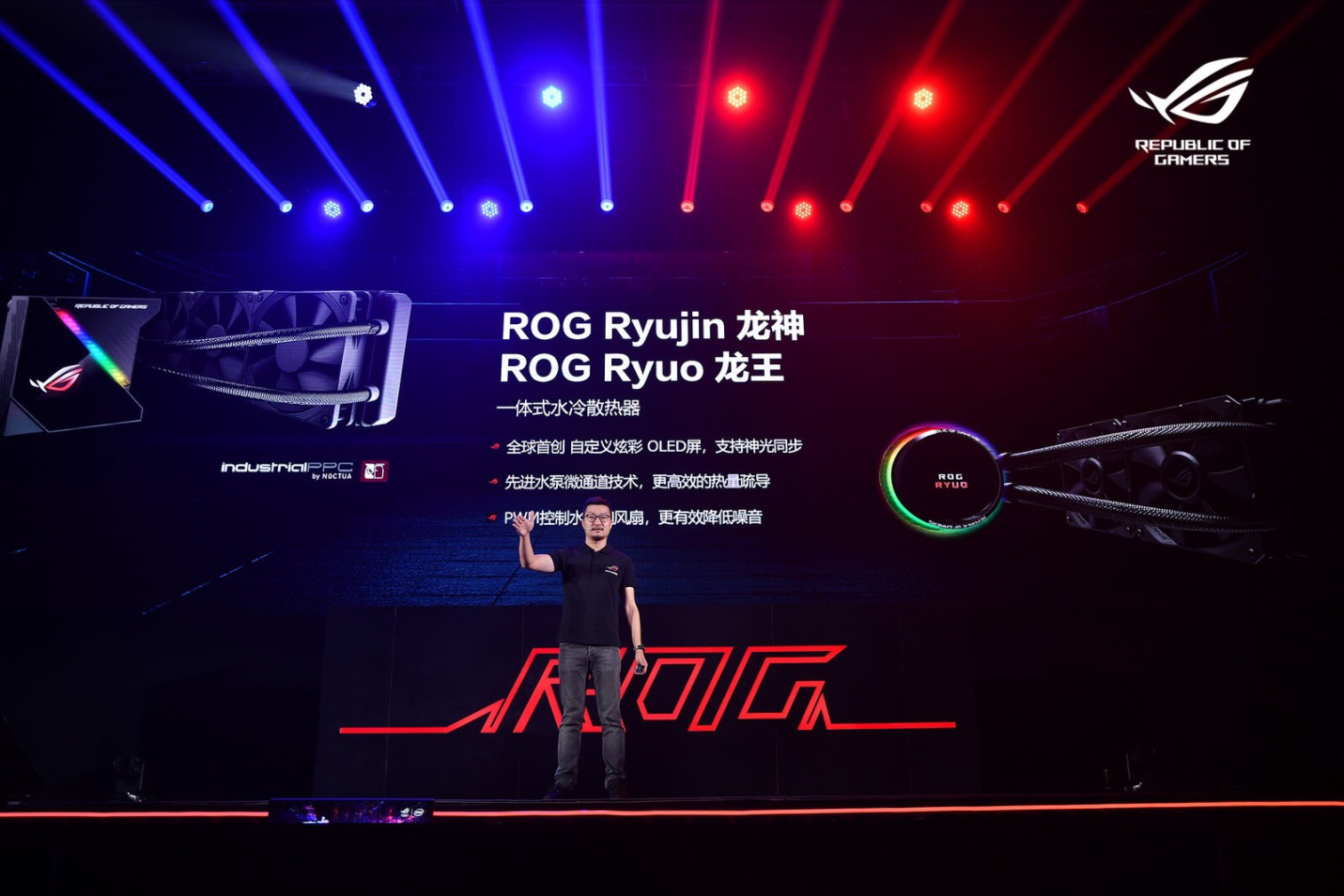 PC游戏超神套装自然少不了水冷装备,盛会上,ROG正式发布了ROG RYUJIN(龙神)一体式CPU水冷散热器,这是世界首款内置1.77英寸LiveDash彩色OLED显示屏的水冷散热器。ROG RYUJIN(龙神)拥有360mm和240mm冷排两个版本,搭载了猫头鹰iPPC 2000 PWM 12cm工业扇,提供绝佳的静音及冷却效能。外观设计上,ROG RYUJIN(龙神)一体式CPU水冷散热器在水冷头上添加了一块1.77 英寸LiveDash全彩OLED面板,它不仅可实时显示系统状态,例如CPU温度、电压等信息外,亦支持播放用户喜欢的图像与GIF。灯光系统同样兼容AURA SYNC神光同步灯效系统,可与ROG主板、显卡等硬件完美匹配,玩家可透过神光同步技术尽情地为其增添独特风采!另外ROG RYUJIN(龙神)还在冷头中嵌入了高效静音风扇,完美解决了传统水冷主板VRM供电区域温度过高的问题,将CPU周围区域M.2 SSD的温度也降下来,风冷、水冷相结合,可以带来更好更稳定的效果。