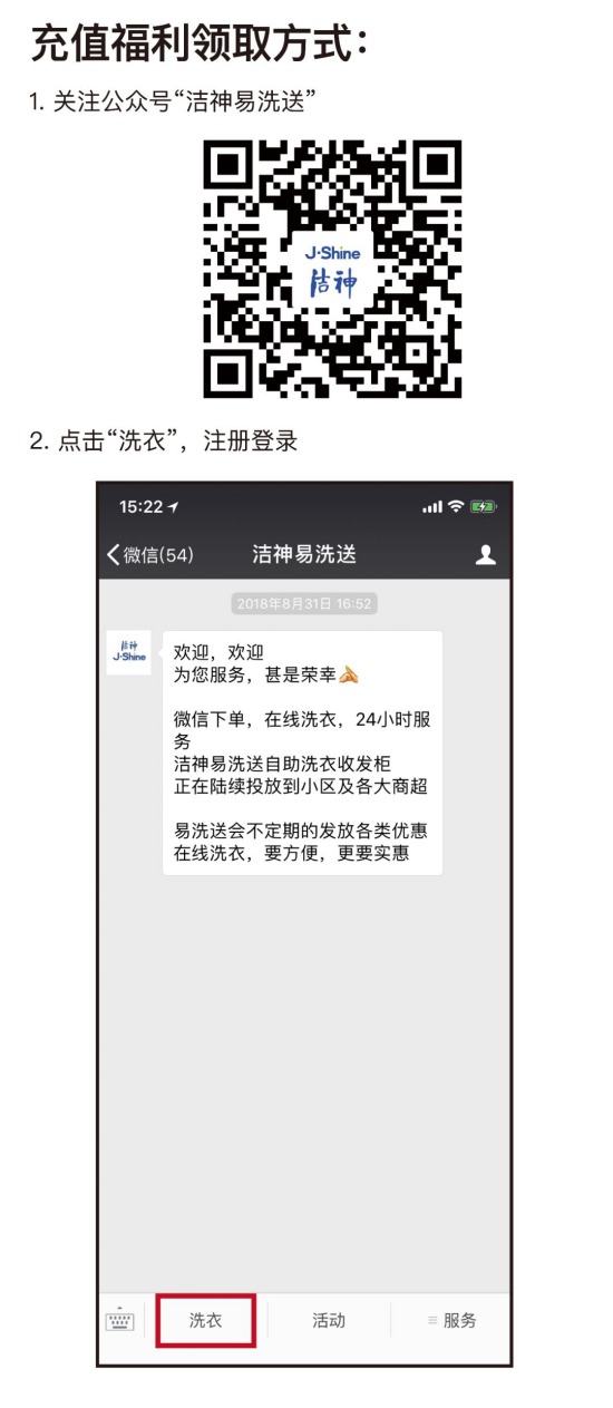 线上充值:关注“洁神易洗送”
