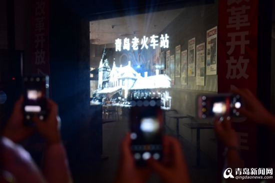 众人穿过3D全息水雾幕,在影像展前驻足,追忆老青岛
