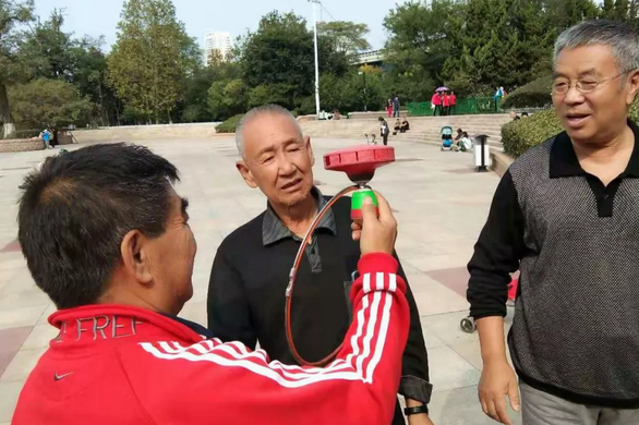 单头空竹、铁圈空竹、甩甩球等纷纷亮相,大家都是八仙过海,各显神通,薛老师的“大鹏展翅”做得相当好,洒脱自如,完全展开真真的似展翅欲飞的大鹏鸟。曹老师的一线二玩得很自如,陈老师的脚抛空竹起得洒脱灵动,展示出了自己独特的技术,众多特点无法一一描述。空友们相互体验,交流体会,真诚又认真,真是应验了那句古话:独乐乐不如众乐乐!而用现在的话又叫好东西大家一起分享!快乐氛围贯穿始终,朋友们完全沉浸在空竹带来的快乐中!也尽情享受空竹给带来的美好!