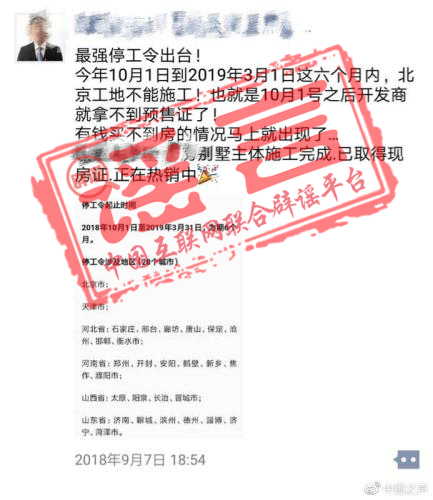 该说法是有关房产销售人士对《京津冀及周边地区2018-2019年秋冬季大气污染综合治理攻坚行动方案》(征求意见稿)的错误解读。