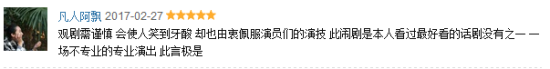 2013年上海话剧艺术中心推出了中文版《糊涂戏班》,也是口碑爆棚,场场爆满。不仅在豆瓣评分达到9.0,更是超越《暗恋桃花源》、《恋爱的犀牛》位列2016年豆瓣年度舞台剧榜单第七名:
