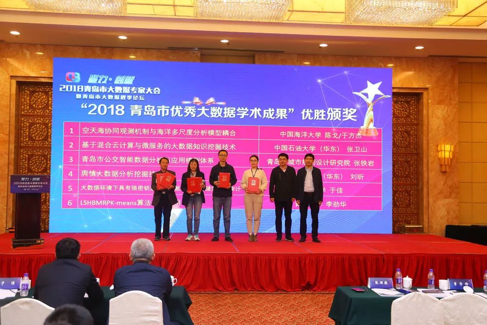 为深入贯彻国家大数据战略,持续推动青岛市大数据创新发展,增进大数据学术研究交流,加强学术成果转化推广,数促会组织征集了2018年度优秀大数据学术成果,经评审筛选,23项学术成果突围而出,入选“2018青岛市优秀大数据学术成果”,其中《空天海协同观测机制与海洋多尺度分析模型耦合》(中国海洋大学陈戈/于方杰)、《基于混合云计算与微服务的大数据知识挖掘技术》(中国石油大学(华东)张卫山)、《公交智能数据分析与应用模型体系研究》(青岛市城市规划设计研究院张铁岩)、《舆情大数据分析挖掘技术》(中国石油大学(华东)刘昕)、《大数据环境下具有强密钥泄露容忍能力的云存储完整性审计》(青岛大学于佳)和《LSHBMRPK-means算法及其应用》(青岛大学李劲华)6项成果因学术价值突出荣获最高奖。
