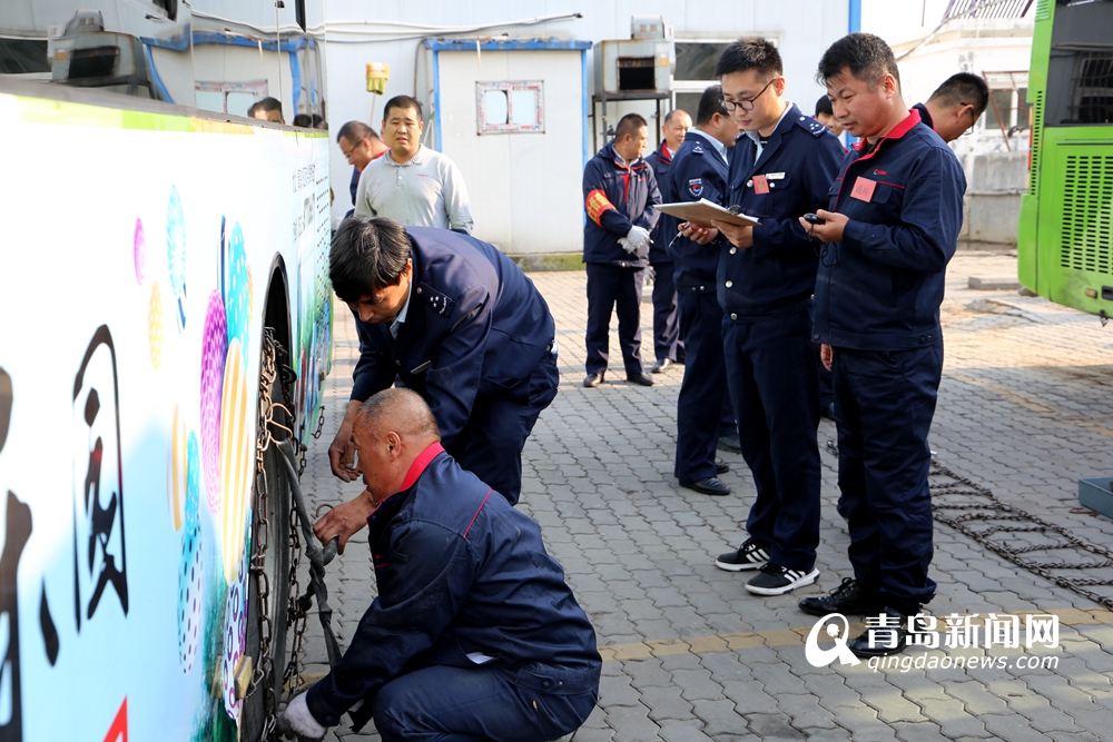 “遇到恶劣天气,需要驾驶员和维修工共同合作完成防滑链条的安装和拆卸工作,为了保证出车,提高安装速度非常重要。日常拆装一辆车两个轮胎的防滑链条一般需要10分钟左右,今天比武过程中最快的只用了3分钟,通过比武了增强了驾驶员和维修工的合作默契,提高装拆速度,为恶劣天气车辆正常运行打下良好基础。”崂山巴士公司副总经理高安介绍说,“冬运开始之前,崂山巴士公司的700余辆公交车全都要日常保养到位,检查过关。所有的驾驶员、维修工都要经过冬运工作操作规程的培训,确保遇到暴雪恶劣天气及时挂上防滑链条,保障冬季市民出行安全。”