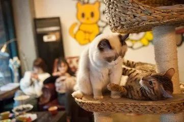 这家店开在了延吉路一商务楼内,店里一共有9位萌主,有可爱的加菲,有温柔的美短,还有慵懒的暹罗……