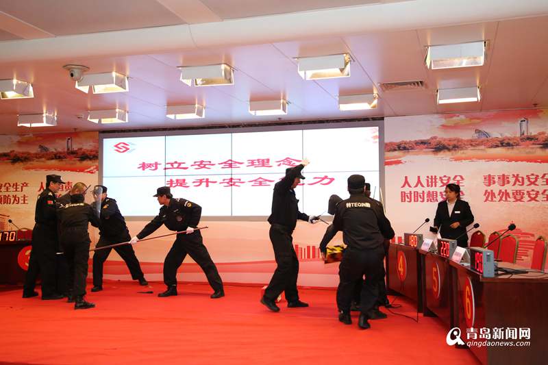 通过知识竞赛营造出了“关爱生命,关注安全”的浓厚氛围,使“我的安全我负责,你的安全我有责,大厦安全我尽责”的安全意识深深扎根于每一个员工心中。为了提高员工的安全防范意识和对突发事件的应对处置能力。新中物业管理(中国)有限公司青岛分公司比赛当天还开展了防抢、防暴演练。