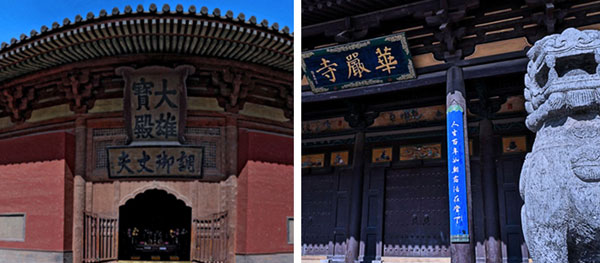 华严宝塔是继应县木塔之后全国第二大纯木榫卯结构的方形木塔,通高43米,上景金盘,下承莲池,特别是塔下近500平方米的千佛地宫,采用100吨纯铜打造而成,内供高僧舍利及千尊佛像,金碧辉煌,全国惟一,是传统与现实完美结合的典范之作。
