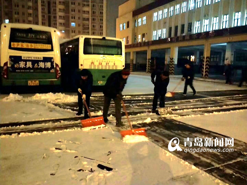 青岛公交集团千名突击队员“上岗”除雪,保障公交安全畅行