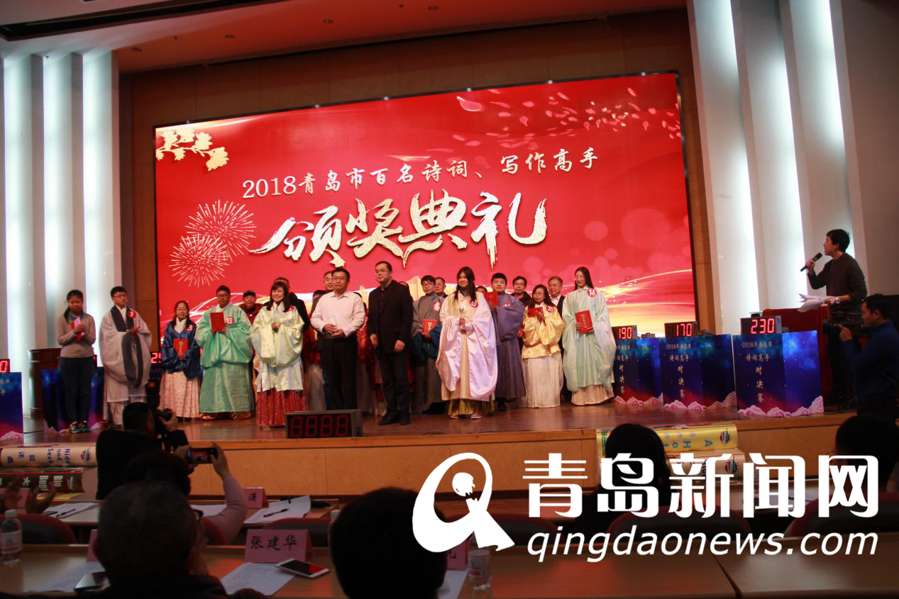 诗词高手决赛结束后,进行了“2018青岛市百名诗词、写作高手”颁奖典礼。